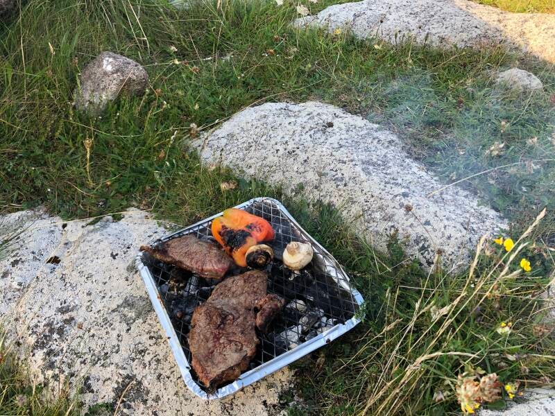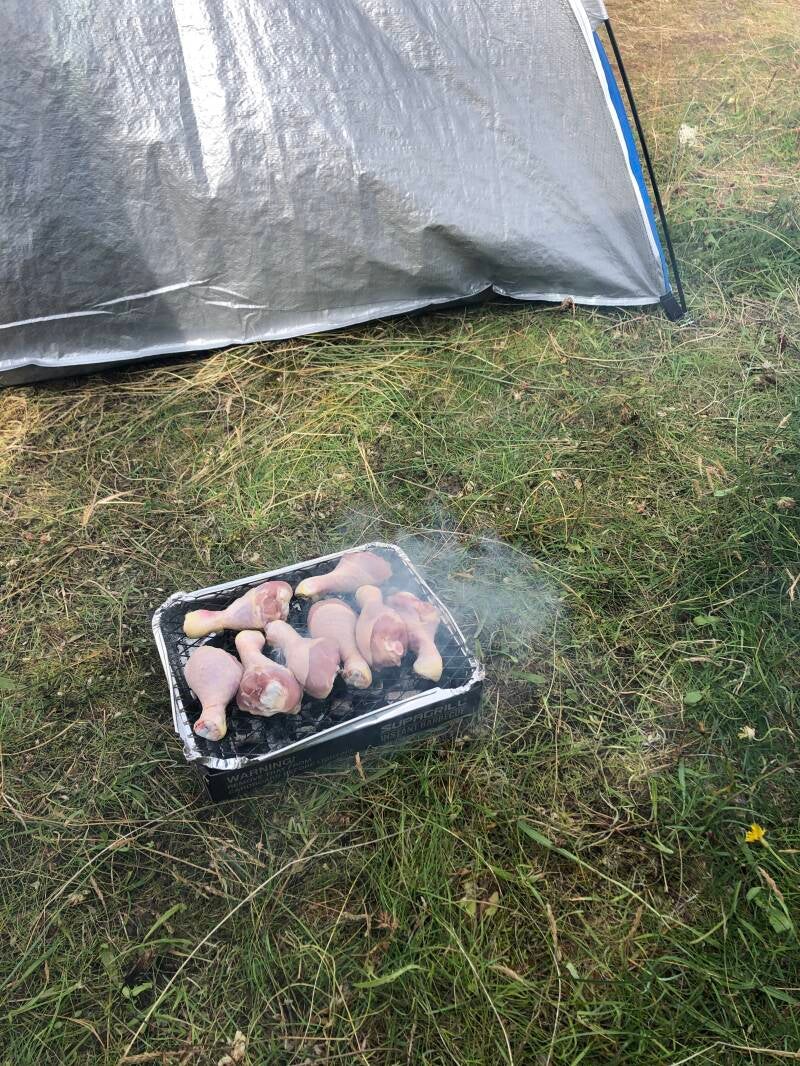 Disposable BBQ is a great job, but tomorrow I will place it on a bed of stones or a rock for obvious reasons. But the chicken wings were great - and I bought a fresh baguette, cheese and salami for tomorrow morning or lunch.