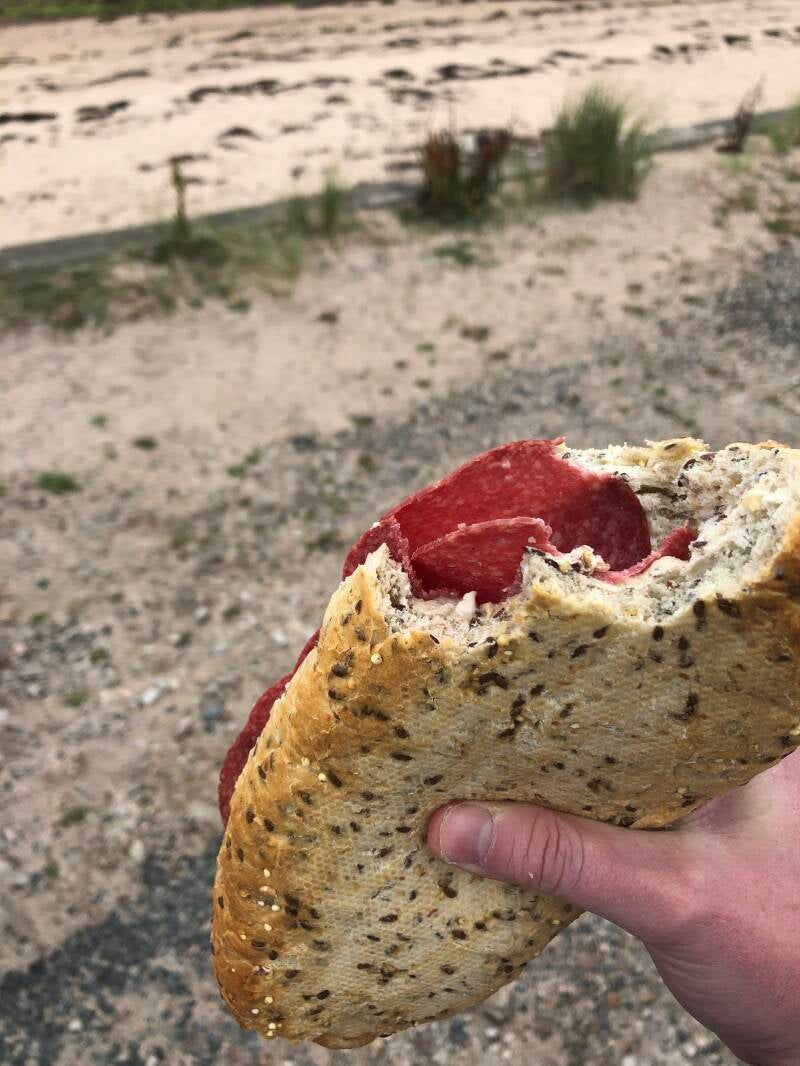 The weather forecast was giving sun but alas it is overcast today but this is not an issue for me in the slightest. After pulling myself together I went for a 3 mile run on the beach and along the back of the sand dunes. Then I made my way down to the beach with a towel for a swim in the sea. It was surprisingly warm and refreshing - and not a jellyfish in sight!