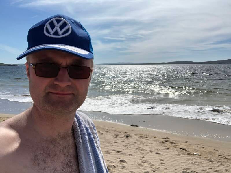 Sun broke through the clouds and it is an absolute scorcher. Time for a cocktail and then BBQ preparation. Who knows maybe a good swim in the sea. I plan to go far out from shore next time. Life is good. I have a sudden urge to abandon my work and my residence and live the life of a nomad and a writer - who knows it might work out but I'll have to run it past the girlfriend.